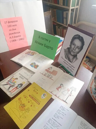 В центральной библиотеке работает книжная выставка «Мир детства в стихах Агнии Барто», на которой представлены книги детской писательницы. Они погружают нас в мир детства и напоминают первые шаги, впервые произнесенное слово «мама», первую нянечку в садике и первую учительницу в школе. Её стихи интересно слушать, они не только смешат и развлекают, но и учат детей уважению к старшим и друг к другу, учат дисциплине, вежливости.