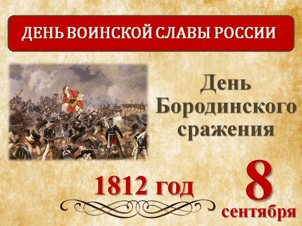 8 сентября отмечается День воинской славы России – День Бородинского сражения русской армии под командованием М.И.Кутузова с французской армией.