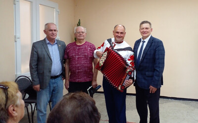 Участники Клуба тепло встречали аплодисментами известного в нашем районе и за его пределами баяниста и гармониста Андрея Воробьёва, который порадовал всех своими душевными песнями, исполненными под гармонь.