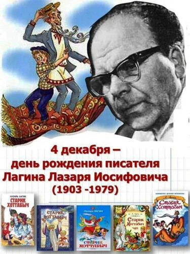 4 декабря родился Лазарь Иосифович Лагин (настоящая фамилия — Гинзбург, 1903-1979 гг.) — русский советский писатель и поэт, ведущий представитель советской сатирической, фантастической и детской литературы. В 1922 году он начал печататься на страницах газет со стихами и заметками. Работал в журнале «Крокодил», с 1934 года — заместителем главного редактора. В 1936 году вступил в Союз писателей СССР. В годы Великой Отечественной войны работал в газете «Красный черноморец» политуправления Черноморского флота, участвовал в обороне Одессы, Севастополя, Керчи, Новороссийска. Повесть-сказка «Старик Хоттабыч» — опубликованая в 1938 году в журнале «Пионер», вышла отдельной книгой в 1940 году. Любимая всей страной повесть-сказка «Старик Хоттабыч» принесла ему наибольшую известность. Сам писатель утверждал, что идея написать «Старика Хоттабыча» появилась у него после многократного прочтения «Сказок 1001 ночи». Вообще, своего Хоттабыча автор изначально задумывал как сатирический памфлет. И лишь с появлением маленького героя изменил сюжет, сделав его более добрым и сказочным. А прообразом мальчика Вольки стал сын знакомых – скульптора Веры Мухиной и врача Алексея Замкова. Мальчик Всеволод с раннего детства болел, ходил на костылях. Лазарь Иосифович часто развлекал сына друзей арабскими сказками и даже придумал ему шутливое прозвище – Волька ибн Алёша. Да и фамилия героя «Костыльков» придумалась, наверное, сама собой. Детям очень нравится читать сказочные приключения Вольки.