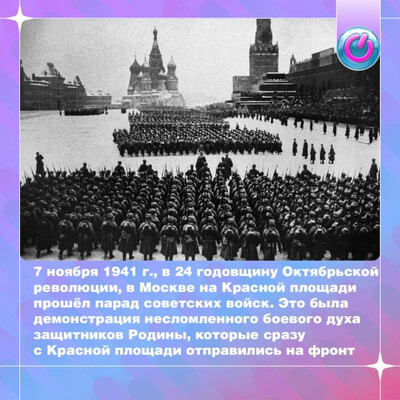 7 ноября 1941 года, когда на Москву наступали фашисты, прошёл военный парад, после которого солдаты вернулись на фронт. Этот парад имел большое значение для поднятия морального духа армии и всей страны. В самые трудные для страны дни Великой Отечественной войны это имело большое военно-политическое значение, оказало моральное воздействие большой силы на боевой дух советских войск, способствовало эмоциональному подъему и укреплению веры в окончательную победу у народов страны. Несмотря на то, что столица СССР была на осадном положении. В некоторых местах линия фронта проходила в 30 километрах от центра города. Накануне парада к советскому народу с речью обратился И. В. Сталин, речь вождя вызвала у слушавшей страны невероятный подъем патриотических чувств и усилила веру в победу над фашистскими захватчиками. В ночь на 7 ноября по указанию Сталина кремлевские звезды были расчехлены и зажжены, от маскировки освобожден Мавзолей Ленина. По силе воздействия на ход дальнейших событий сам парад на Красной площади приравнивают к важнейшим военным операциям Великой Отечественной войны 1941-1945 годов.