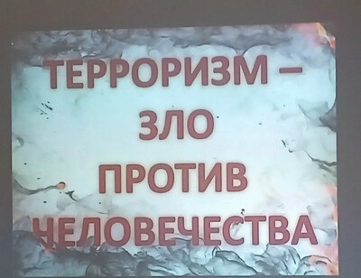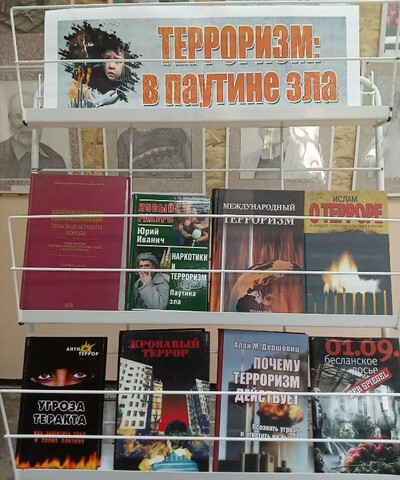 Мероприятие сопровождала слайд-презентация. Также была представлена выставка "Терроризм: в паутине зла", материалы которой позволяют более подробно узнать о последствиях, жертвах и жестокости терроризма.