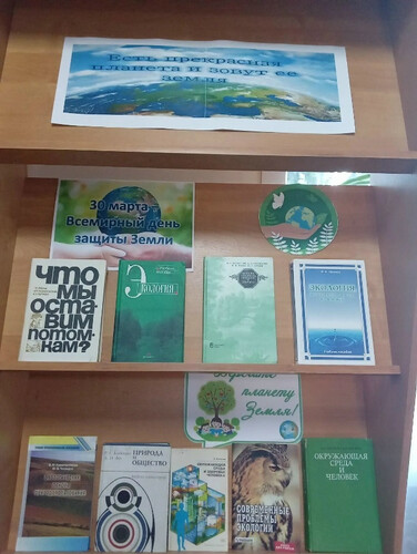 В центральной библиотеке работает книжно-иллюстративная выставка «Есть прекрасная планета и зовут её Земля». Издания, представленные на ней, призваны обратить внимание на красоту планеты и необходимость её защиты. Около выставки библиотекарями были проведены индивидуальные беседы. | |
