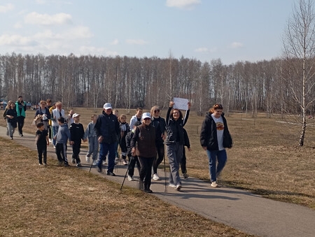 Потом состоялась разминка участников акции (в здании Центра), после которой все зашагали по асфальтированным дорожкам Верочкиной рощи, отмеряя эти самые тысячи шагов. Кто-то двигался быстрее, кто-то медленнее (мамочки с колясками), но все сумели с хорошим настроением и результатом осуществить намеченное. 10 000 шагов покорились!