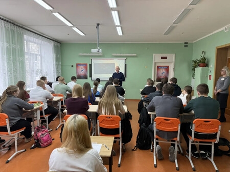 В Покровском районе было организовано три площадки для проведения «Диктанта Победы»: в Покровском лицее, Дросковской школе и Покровском техникуме. Мне довелось побывать на площадке Покровского лицея и выступить перед учащимися перед началом написания диктанта, рассказав о его важности и нужности как одной из традиций по сохранению исторической памяти. | |