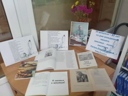 Друзья, познакомиться с творчеством Петра Семёнова вы можете в Покровской библиотеке. Здесь для вас работает книжная выставка, посвящённая 80 - летию со дня его рождения. | |