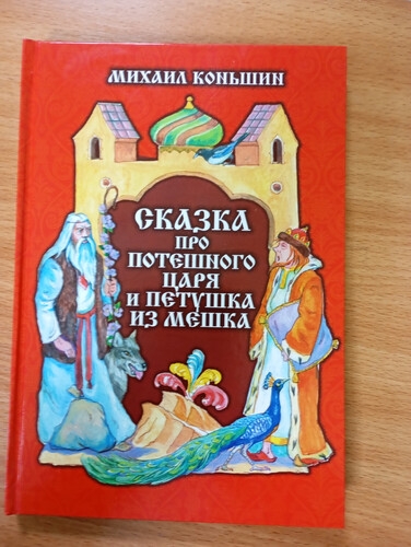 На этот раз библиотека выступила инициатором творческой встречи М. И. Коньшина в Покровском лицее, директор которого, Ирина Дмитриевна Спиридонова, сразу же и с удовольствием пошла нам навстречу. Слушателями и зрителями стали учащиеся 5-7 классов и учителя. Выставка книг писателя и небольшая видео-презентация предваряли начало встречи, а со вступительным словом выступил я – как коллега и давний знакомый Михаила Ивановича. В Покровском лицее детский писатель и поэт представил своё новое произведение – замечательную сказку под названием «Сказка про потешного царя и петушка из мешка». Она только что вышла красочной книгой с иллюстрациями Андрея Турбина в издательском Доме «Орлик». Более ста страниц, десять глав, затейливый сюжет, юмор и красочный народный язык – делают «Сказку про потешного петушка…» достойным преемником сказок великого Пушкина, хотя сам Михаил Иванович постеснялся так сказать. Но подтвердил, что Пушкин – его любимый поэт (наряду с Лермонтовым). Михаил Иванович рассказал, что петушок из будущей сказки однажды ему приснился, а потом и то, что он напишет сказку о нём в стихах. Пришлось выполнять приснившееся, и получилось замечательно. В этом может убедиться любой читатель, который придёт в Покровскую библиотеку и возьмёт экземпляр сказки Коньшина, подаренный им нам с автографом. В конце творческой встречи были вопросы к Михаилу Ивановичу от слушателей и фото с писателем и поэтом – на память. Встреча запомнилась её участникам – теплотой и душевностью, умением взрослого вести разговор с учениками на равных. Договорились о продолжении таких встреч в будущем.