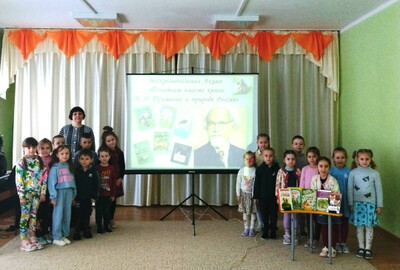 В этот день воспитанники детского сада «Теремок» вместе с библиотекарем Покровской детской библиотеки Татьяной Черных и практиканткой Юлией Мякинькой совершили увлекательное литературное путешествие по страницам книг Михаила Пришвина.