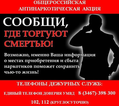 Возможно, именно Ваша информация о местах приобретения и сбыта наркотиков поможет сохранить чью-то жизнь!