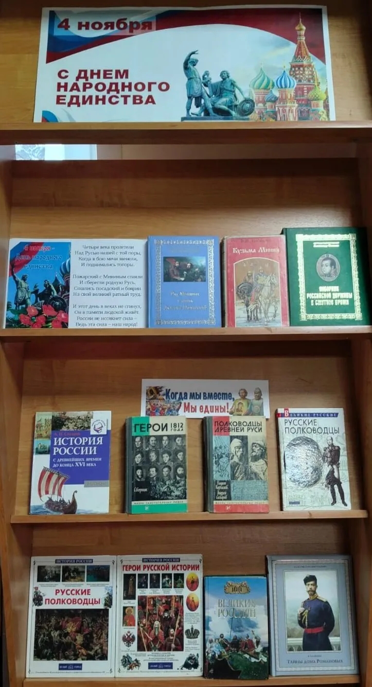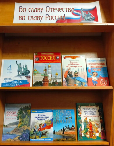 Подвигу наших предков, которые под предводительством К. Минина и Д. Пожарского, объединились, спасли и сохранили страну, сделали возможным её будущее возрождение, посвящён комплекс мероприятий «Сила России в единстве народа» в библиотеках Покровского района. На взрослом и детском абонементах работают книжно-иллюстративные выставки: «4 ноября. С днём народного единства!» и «Во славу Отечества, во славу России!», на которых можно познакомиться с различной литературой, повящённой событиям 1612 года, героям тех далеких времён начала XVII века, когда воины народного ополчения под предводительством Кузьмы Минина и Дмитрия Пожарского, проявив героизм и сплоченность, штурмом взяли Китай-город и освободили Москву от польских интервентов. Возле выставок с читателями проводятся беседы по теме. В Вышнетуровецкой сельской библиотеке проведена беседа у выставки "В сердце светит Русь". | |