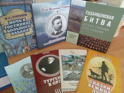 Также, вас ждут другие интереснейшие краеведческие книги: «О, родина святая…: А. Н. Апухтин и орловский край», «Для величия Родины: 150 лет со дня рождения В. А. Русанова», «Судбищенская битва: история открытия поля сражения», Тургенев, И. С. Ночь в гостинице Большого Кабана», «Тургенев в Орле», «Тургенев, И. С. Сказки Бежина Луга».